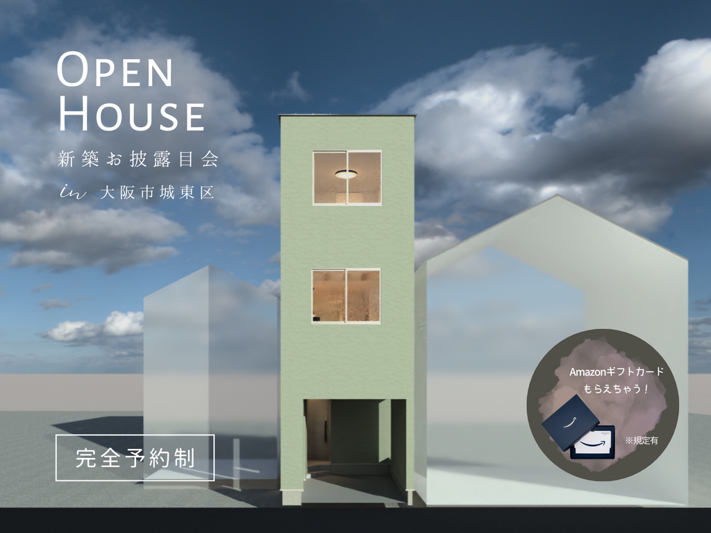 | タイトル | 【新築お披露目会】城東区|無理なく、無駄なく、豊かに暮らす3階建て |