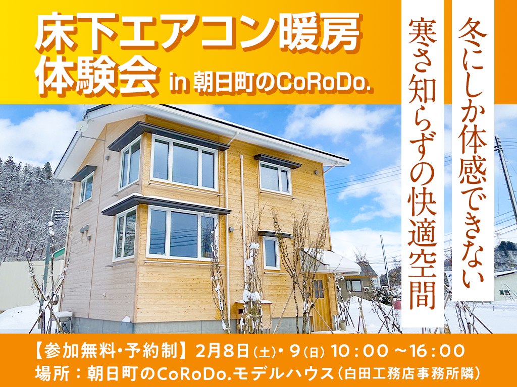 | タイトル | 床下エアコン暖房 体験会! in 朝日町のCoRoDo.モデルハウス |
