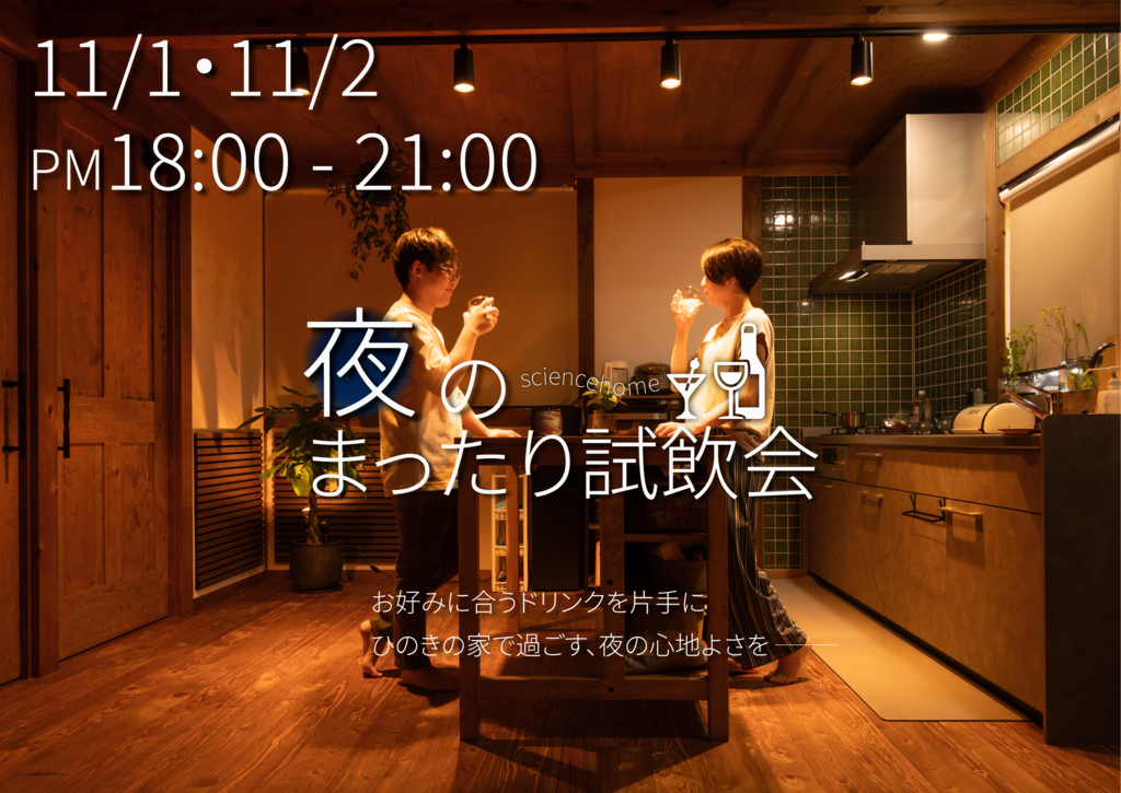 あなたのお好みに合うドリンクを片手に、ひのきの家で過ごす夜の心地よさを体感していただけるひととき。