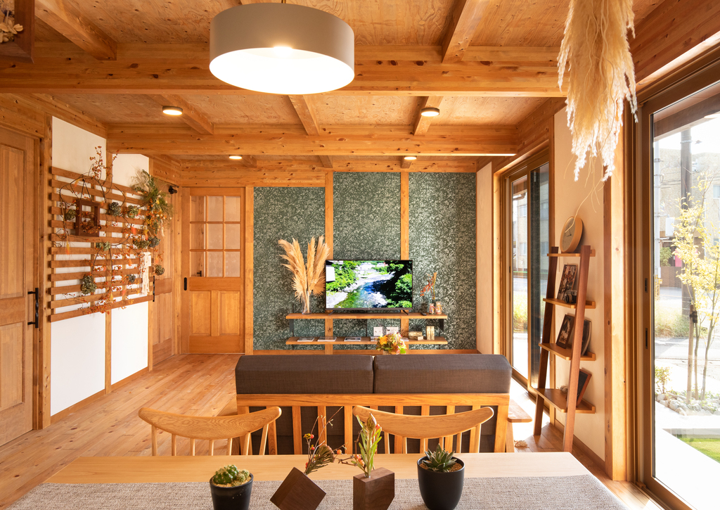 〇カフェみたいに、おしゃれで落ち着く木の平屋。