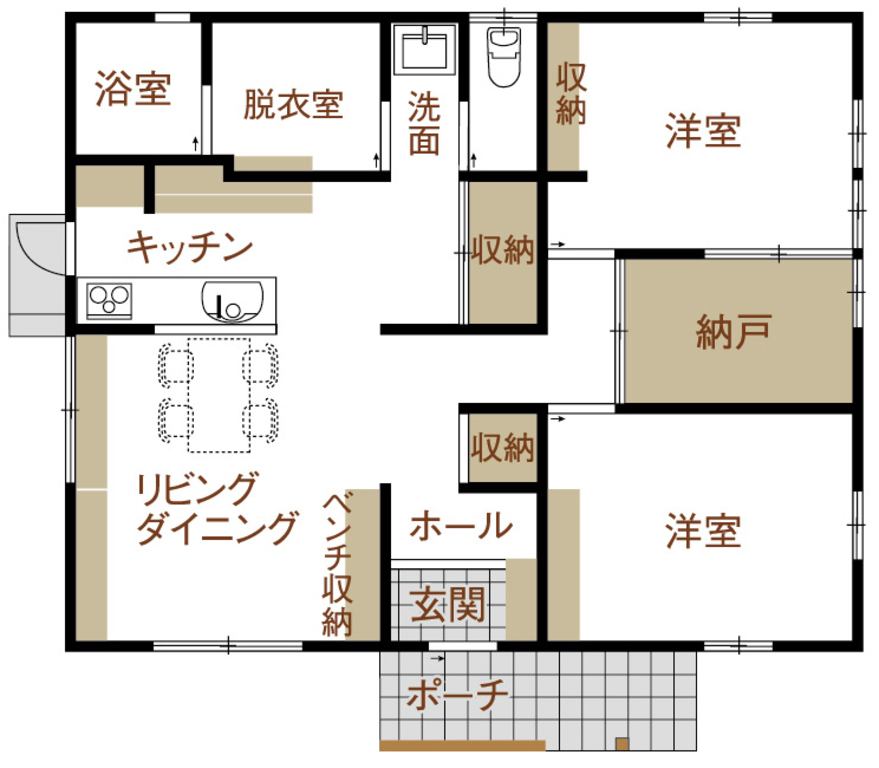 引き出しや戸棚、パントリーなどを効果的に使って収納を工夫しております。