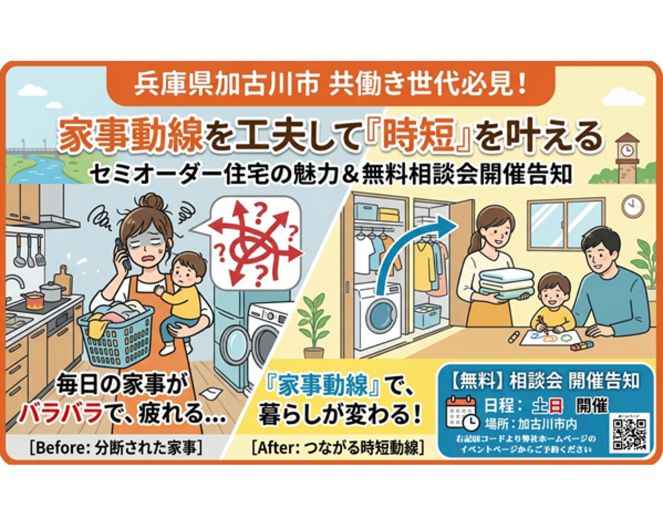 【加古川市】共働き夫婦の救世主!「家事動線」で暮らしが変わる、失敗しないセミオーダー住宅相談会