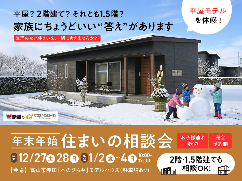 | タイトル | 年末年始 12/27 12/21 1/2 1/3 1/4 「家づくり相談会」開催! |