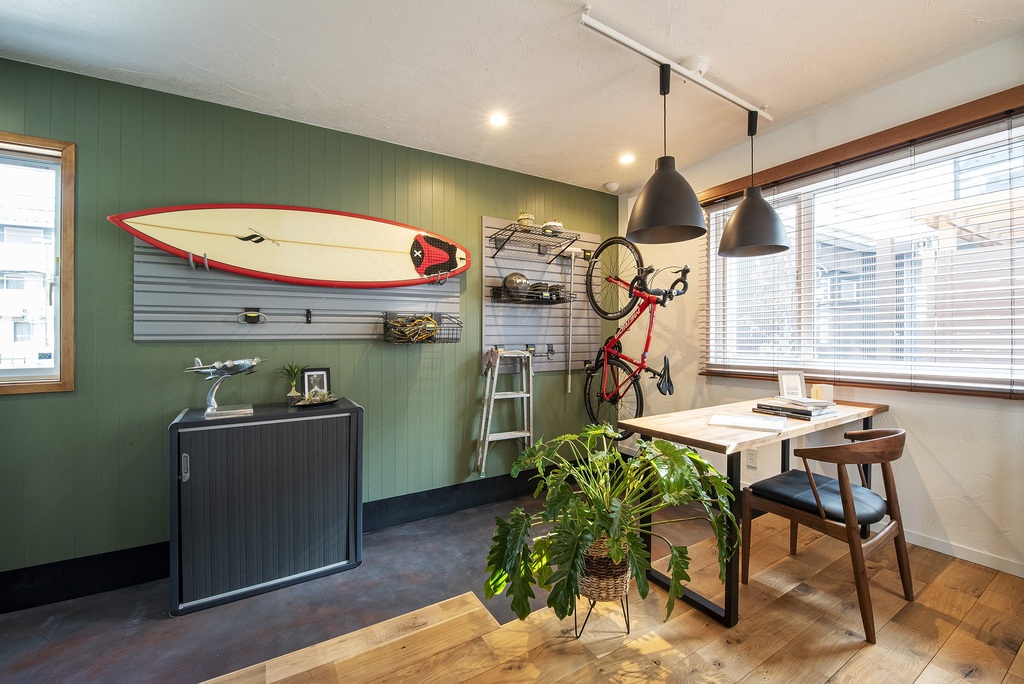 休日はホビールームとして活用し、平日は集中して仕事ができるテレワークスペース。