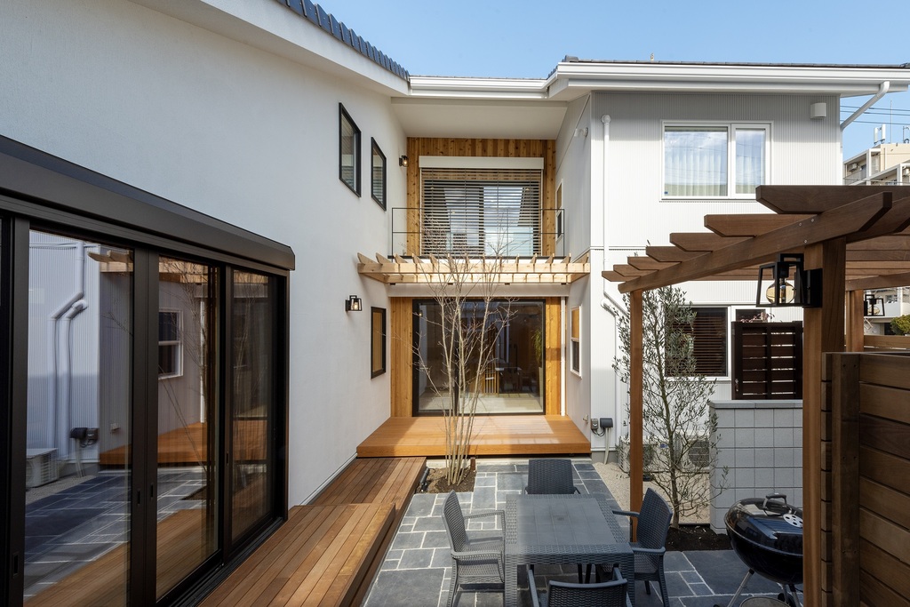 アウターリビングとして家族や友人が集い、BBQやホームパーティーを楽しむことができます。
