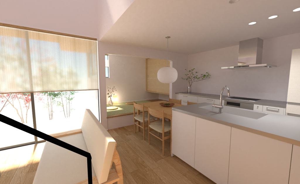 ダイニングキッチンはスムーズな動線を意識し、ダイニング横には小上がりの畳スペースを配置しています。