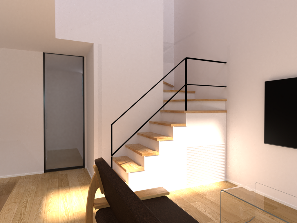 吹き抜けのリビングには太陽の光がサンサンと降り注ぎ、自然な広がりを感じる心地よい空間に。