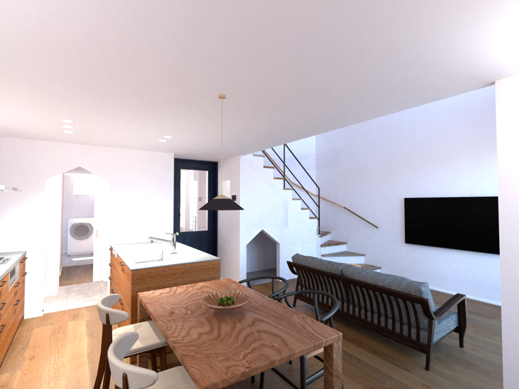 愛犬のための階段下スペースや毎日の支度が楽しくなるオリジナルの造作洗面台など、