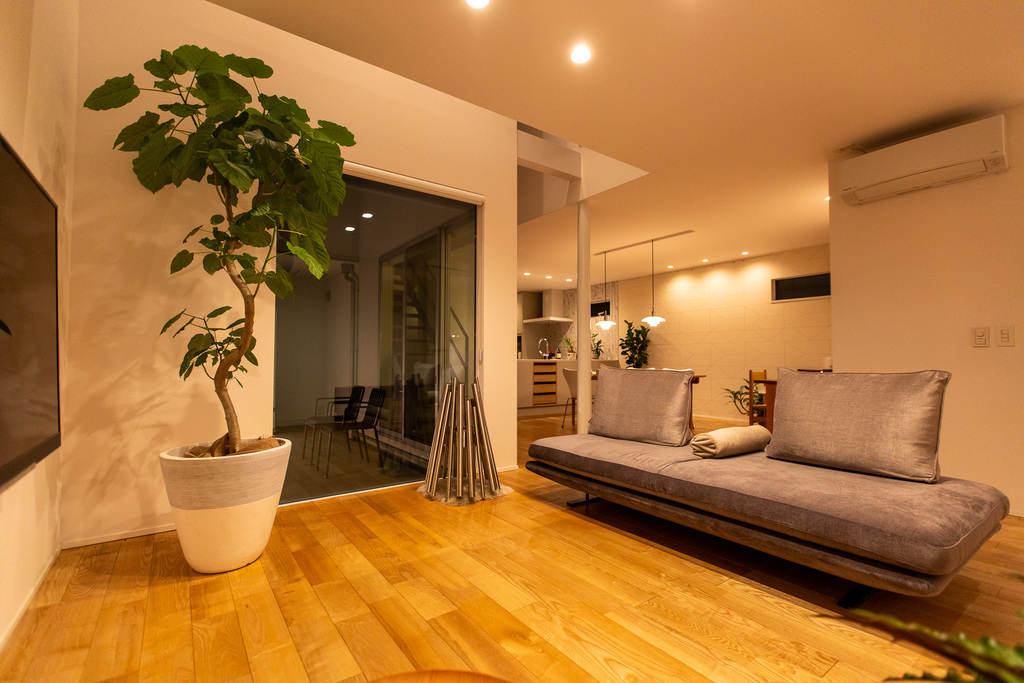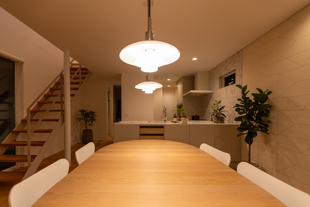 「家の中では、外からの視線を気にせずにリラックスしたい」というオーナー様のご要望から、コートハウス形式の間取りを採用しました。お子様が安全に過ごせる遊び場として、時にはお客様を招いてBBQを楽しむ場として...暮らしに合わせて様々な使い方が出来る空間となっています。