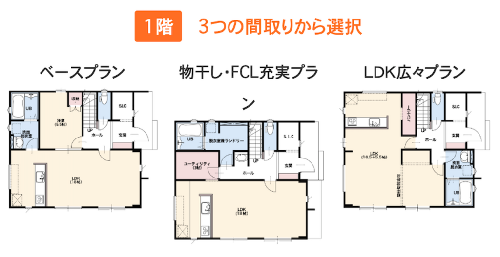 24坪、30坪、32坪、35坪を中心に、多くのパターンから間取りを選べます。