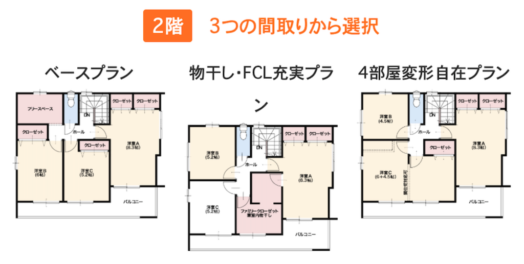坪数やプランの方向により、選択できる間取り数が異なる場合があります。