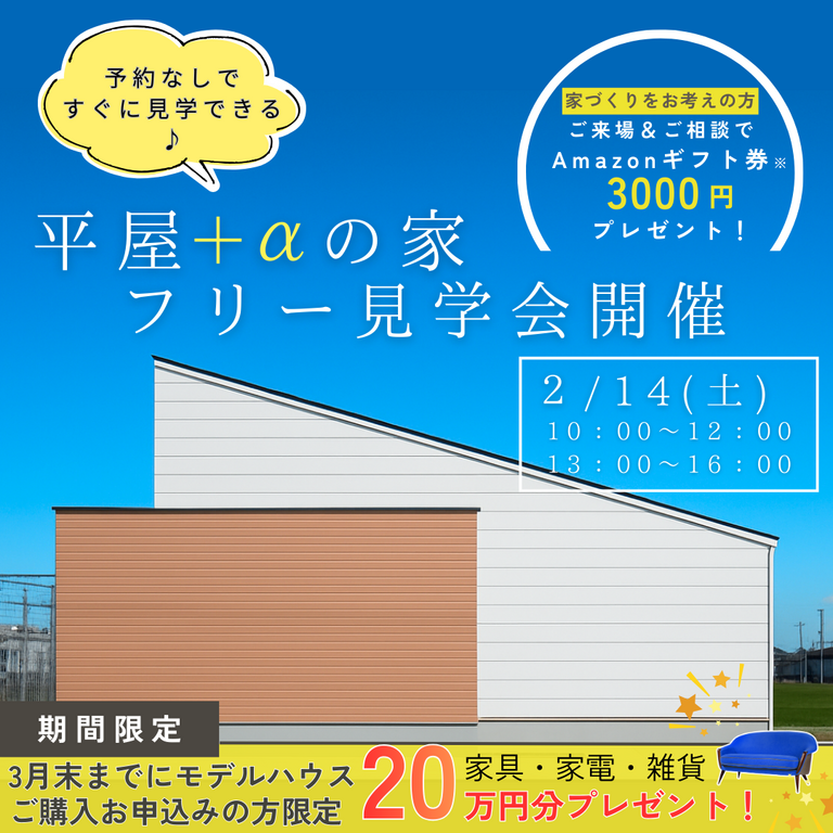本イベントはフリー見学会(予約不要)になります。お家づくりをお考えの方はもちろん、そうでない方もお気軽にお立ち寄りください!