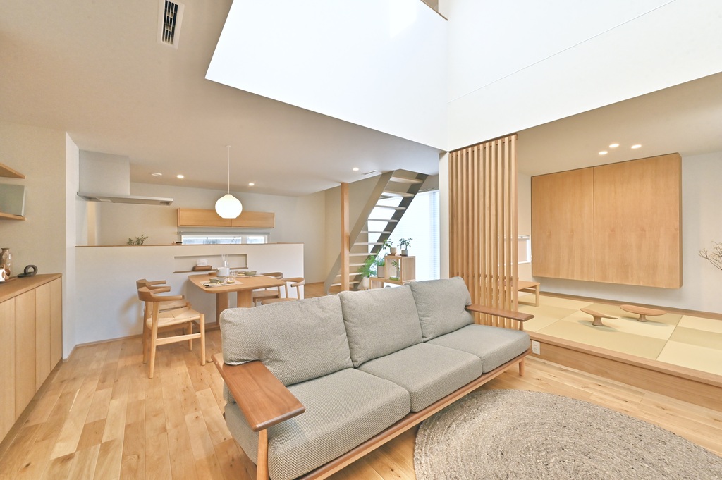 地震に強くなるだけでなく、木造軸組工法の利点を活かした「大きな吹き抜け」や「広々とした間取り」も取り入れられるメリットもあります。