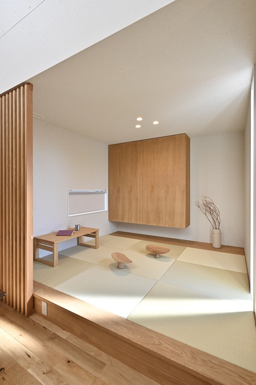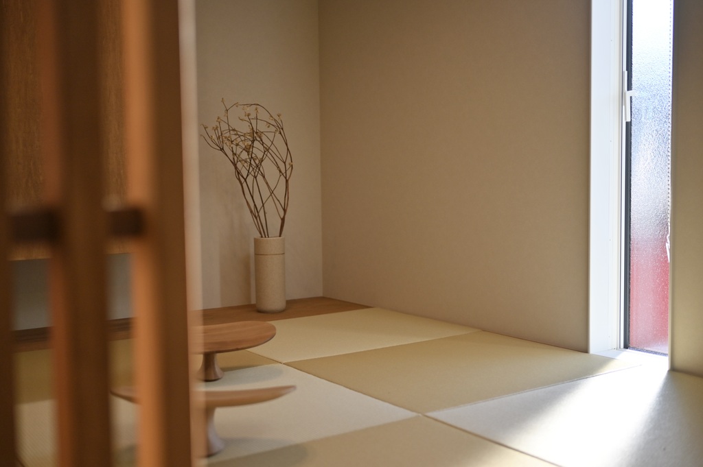 小上がりの和室が、朝も昼も夜も違う表情で心を和ませる。