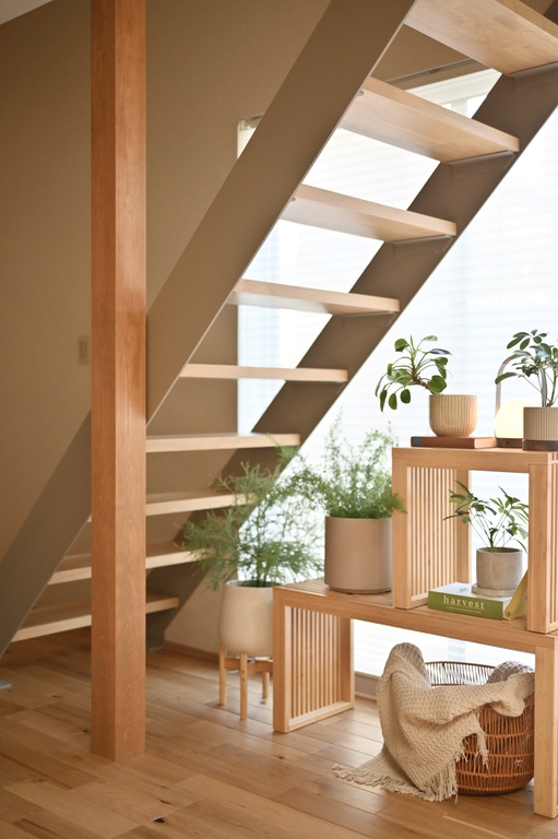 リビング階段は、グレーで仕上げたアイアン仕様。
