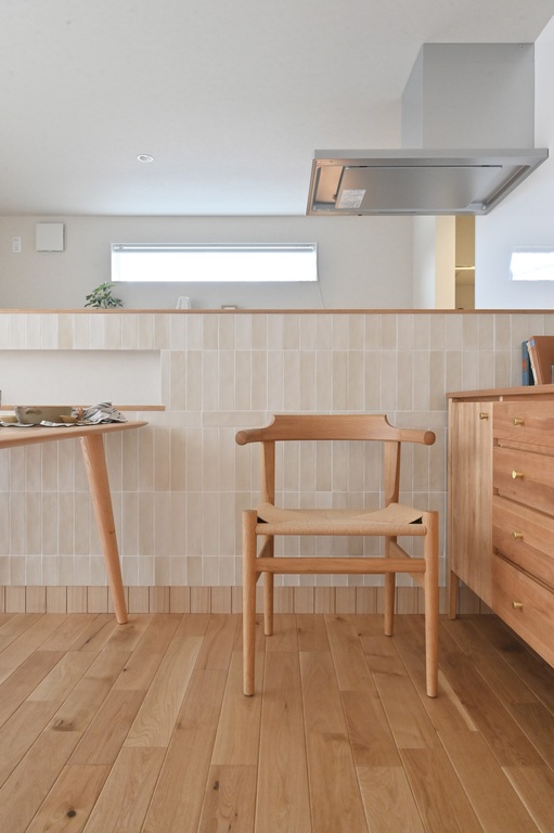 タイルをあしらったキッチン腰壁は、