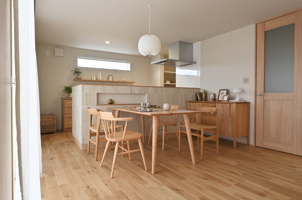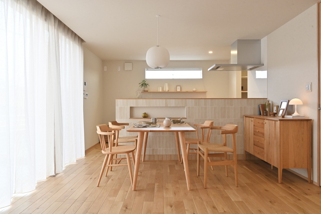自然素材の温もりが、そっと家族を包み込むように広がっていく空間。