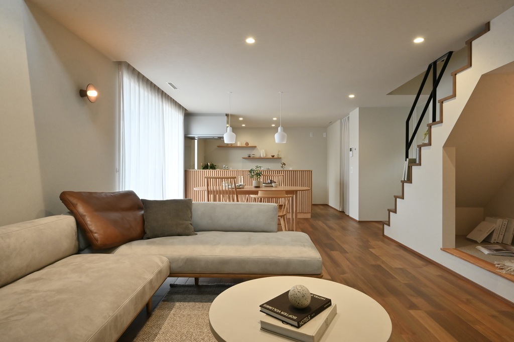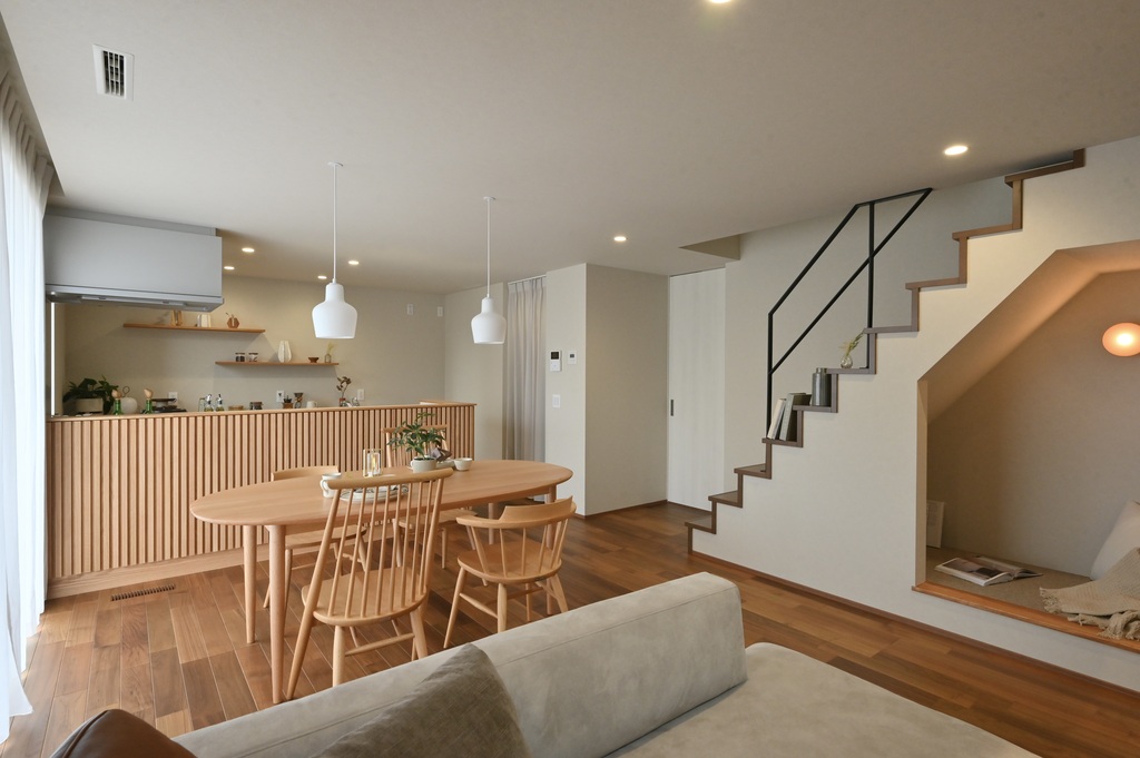 地震に強くなるだけでなく、木造軸組工法の利点を活かした「大きな吹き抜け」や「広々とした間取り」も取り入れられるメリットもあります。