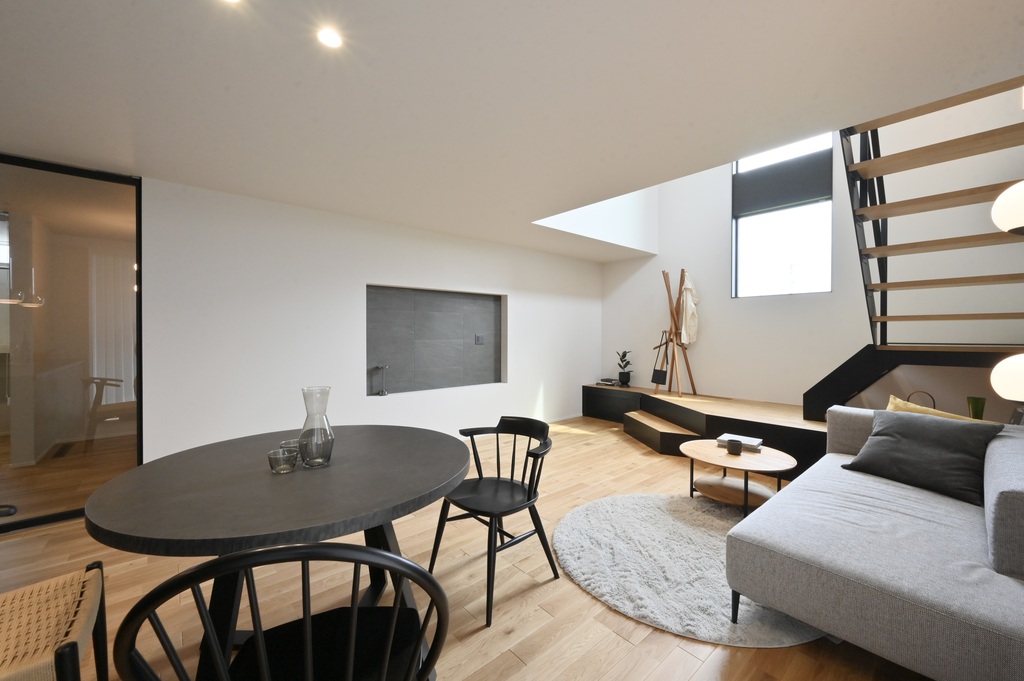 光と影が織りなす時間の移ろいが、日常に静かな豊かさを与える住まい。