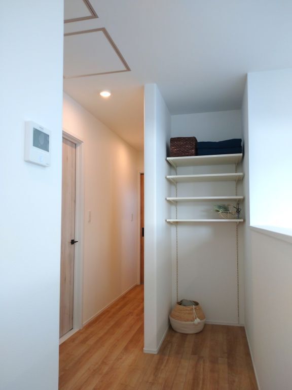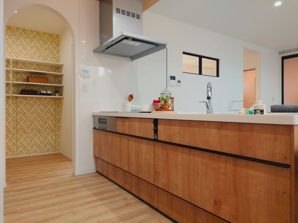 飾り棚から大型パントリーまで種類豊富に収納をご用意しました。飾り棚にはお気に入りの小物や思い出の写真、おしゃれなスパイスなどの見せる収納がおすすめです。大型収納には備蓄品や普段使いの日用品、そのストックなど、用途に合わせた使いやすい収納ができます。