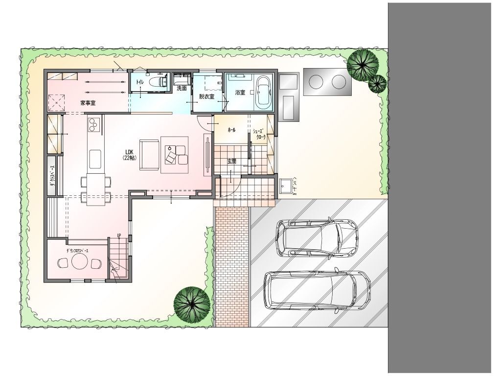 1FはLDKを中心にくるくると回遊できる動線を採用おり、ストレスフリーな生活を叶えます。頭から足元まで心地良い、全館空調ならではの快適空間をご体感ください。