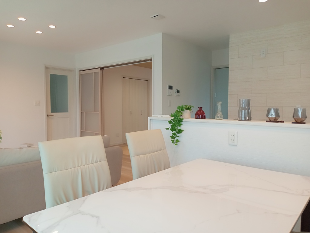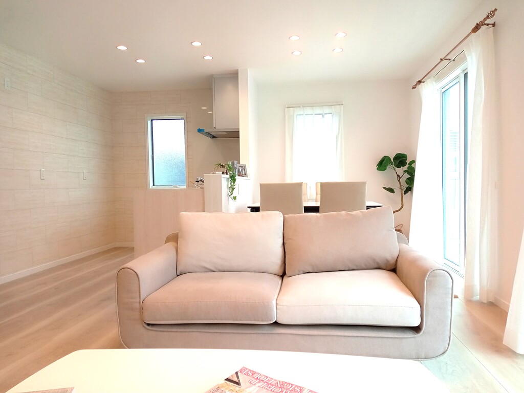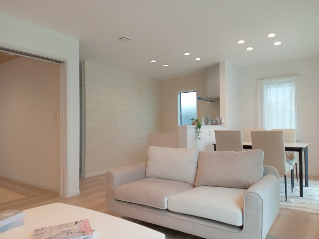 こちらのお家の魅力は、なんといってもその快適さ。南向きのLDKは、17帖の広さを誇り、明るい陽射しが差し込み、家族が集まり、心地よい時間を過ごすことができます。また、水回りには安心のLIXIL製を採用。キッチンには便利な食器洗い乾燥機、バスルームには暖房乾燥機が完備されており、家事の負担を軽減します。