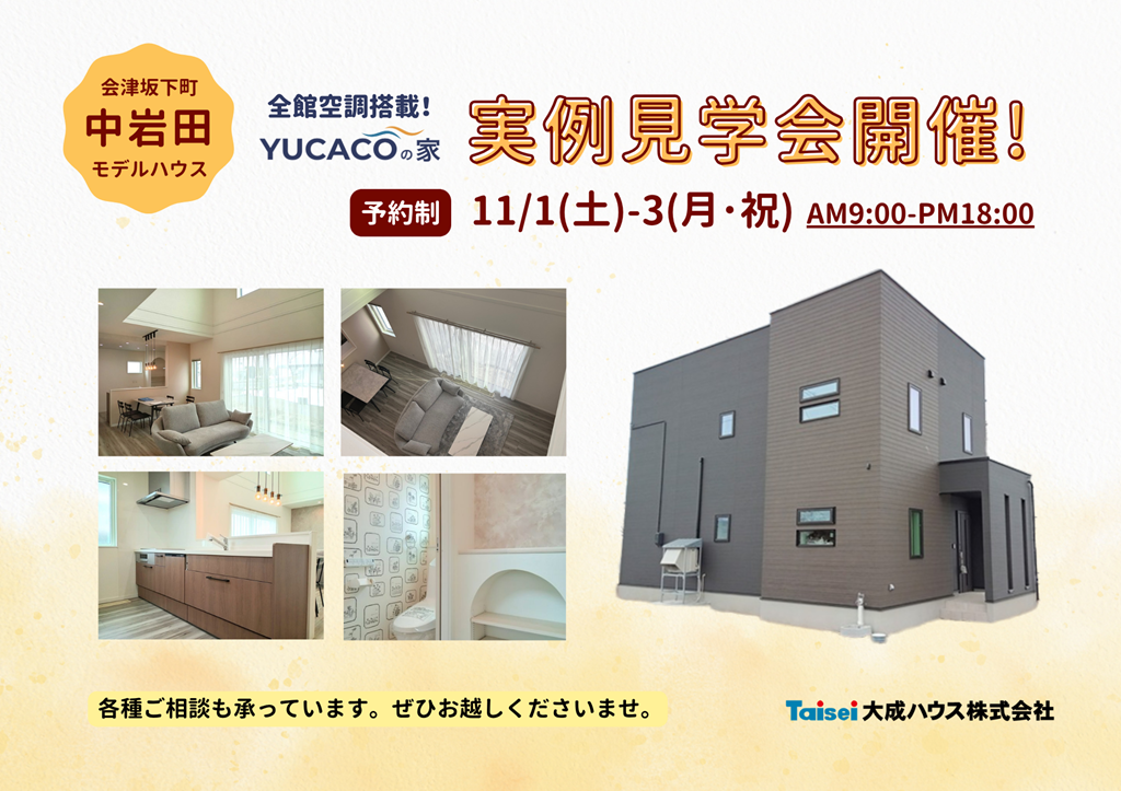 【会津坂下町中岩田】11/1(土)-3(月・祝)全館空調搭載モデルハウス実例見学会開催