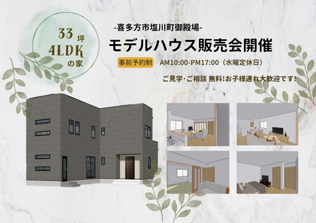 【喜多方市塩川町御殿場】新築モデルハウス 販売予約開始!
