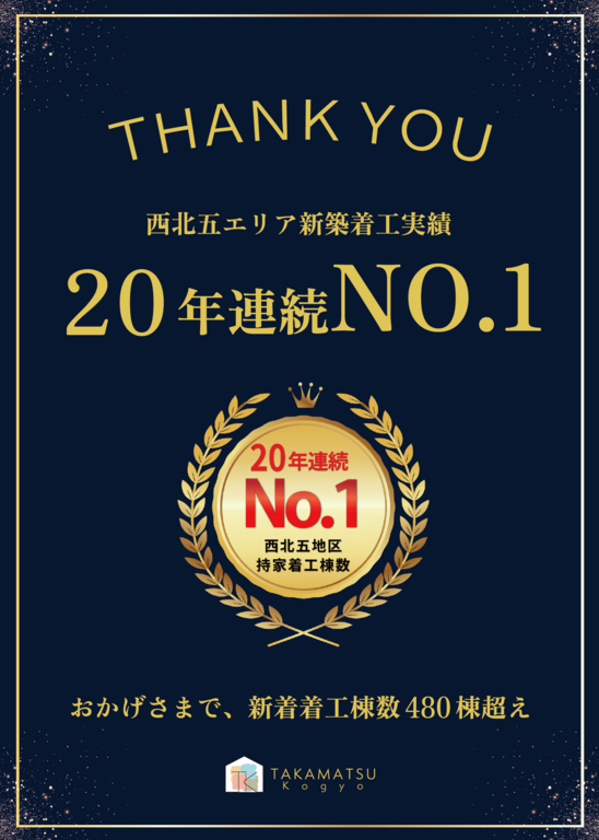 おかげさまで、20年連続着工件数No.1(西北五地域)