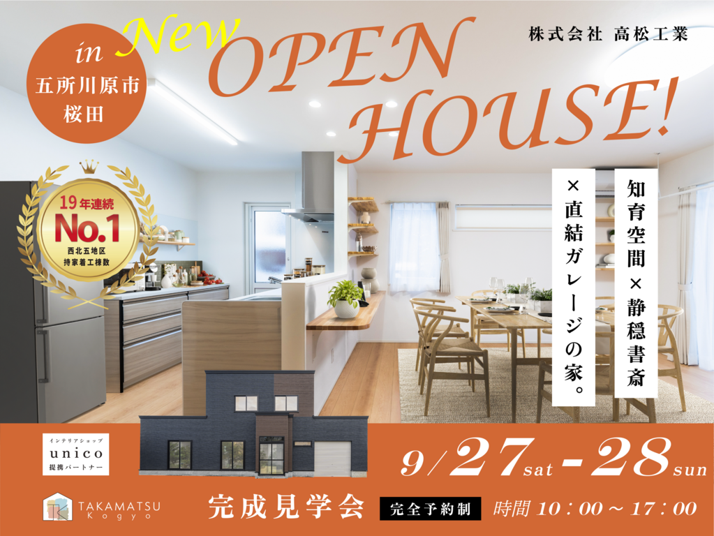 【五所川原市桜田 見学会】知育空間×静穏書斎×直結ガレージの家