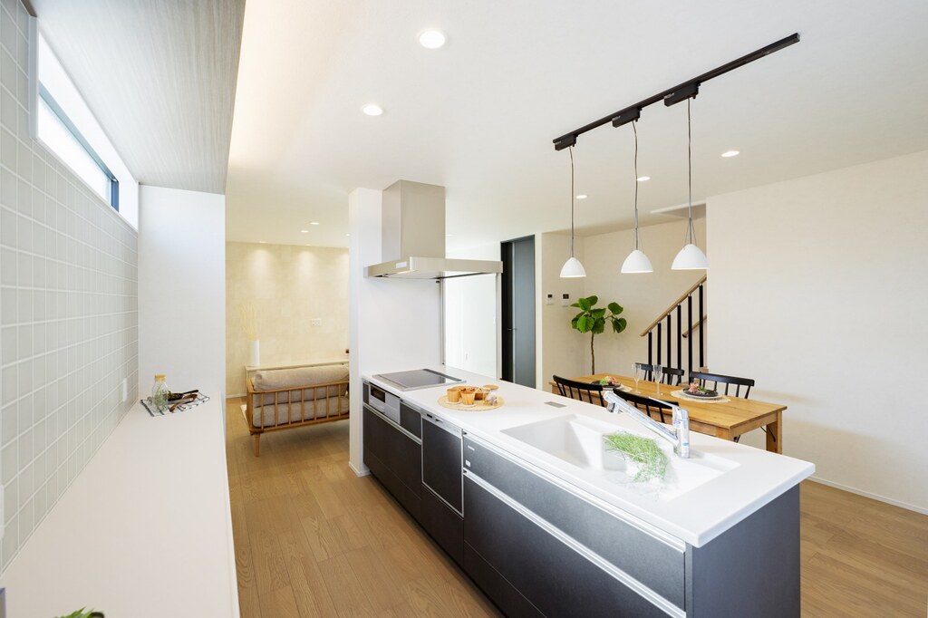 オール電化, エコキュート, 省令準耐火, 地盤保証20年, 建物保証20年, 住設保証10年, 定期点検20年, 全室LED照明, カーテン, ダイニングテーブル, ソファ, エアコン2台, 外構一式, 腐れ・白蟻保証20年, 浴室乾燥暖房
