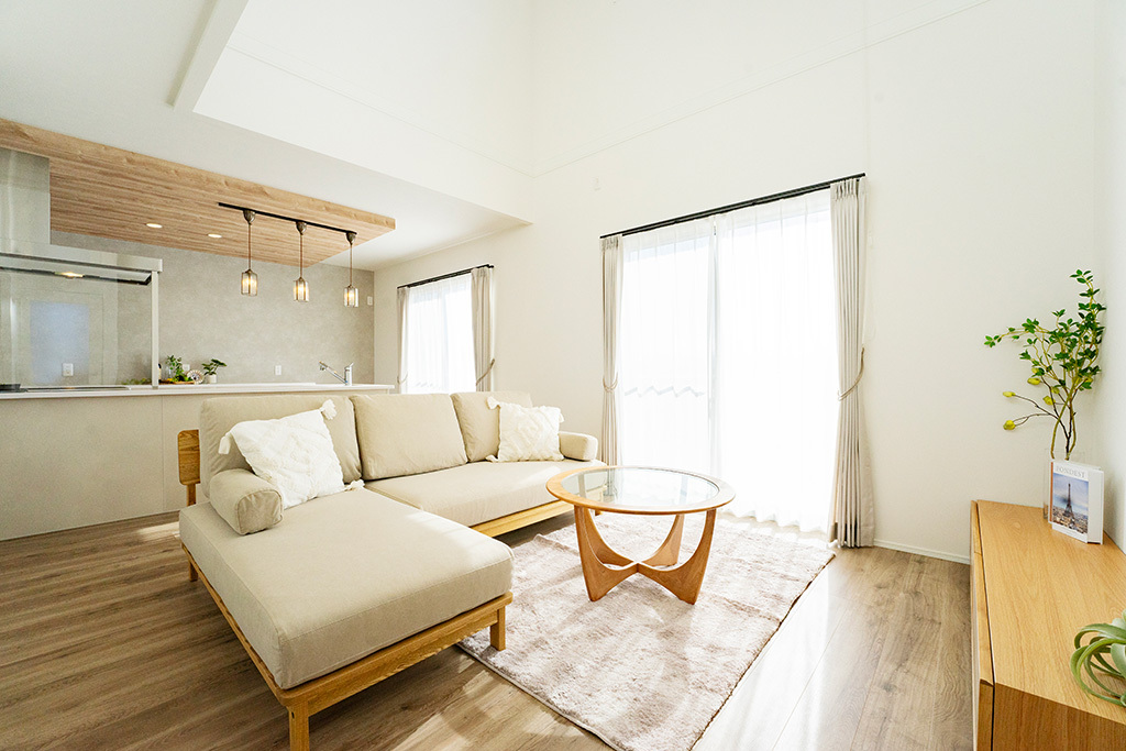 オール電化, エコキュート, 省令準耐火, 地盤保証20年, 建物保証20年, 住設保証10年, 定期点検20年, 全室LED照明, カーテン, ダイニングテーブル, ソファ, エアコン2台, 外構一式, 腐れ・白蟻保証20年, 浴室乾燥暖房