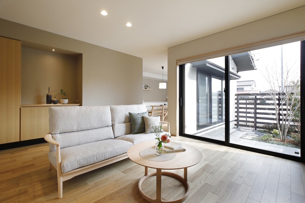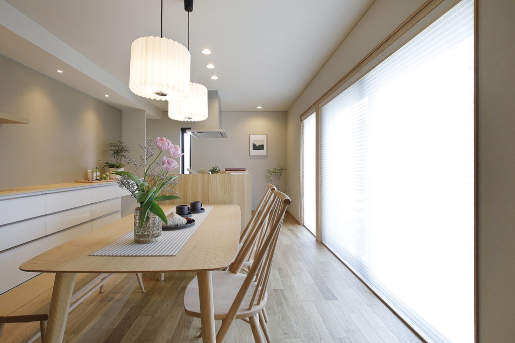 開放的な窓形状でどこに居ても明るく、緑を感じるLDKです。