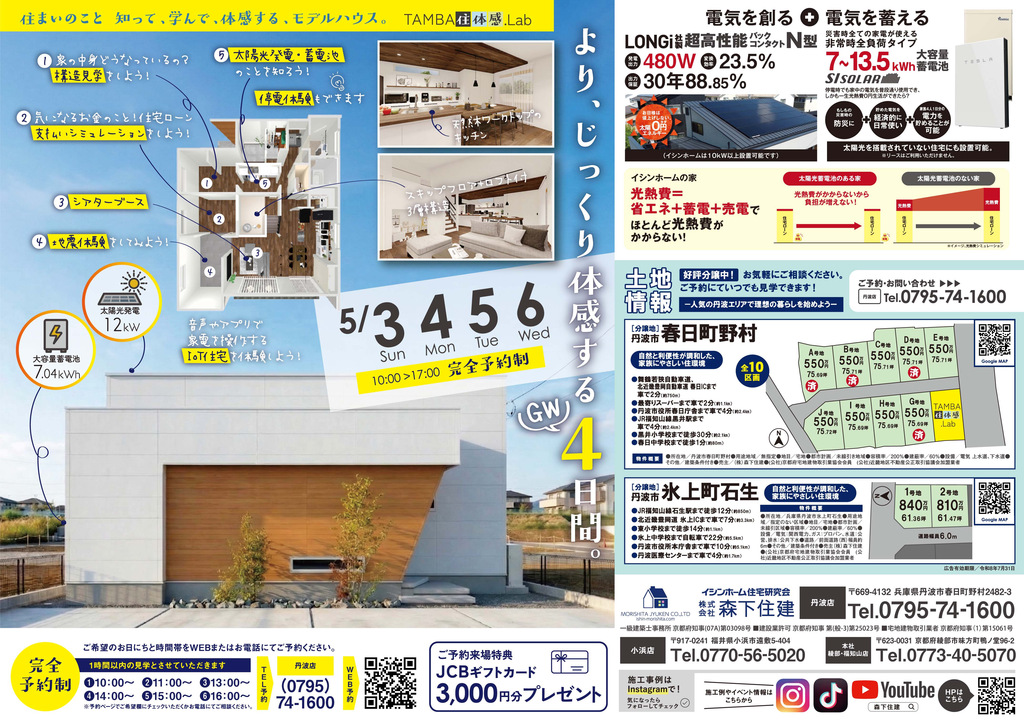| タイトル | 完全予約制!体感型モデルハウス【TAMBA住体感.Lab】 見学会 |