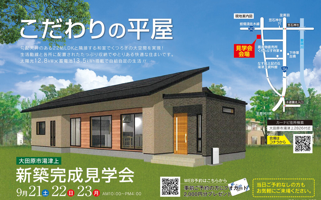| タイトル | 大田原市湯津上【X-ZEGA完成見学会】9/21~23開催 |