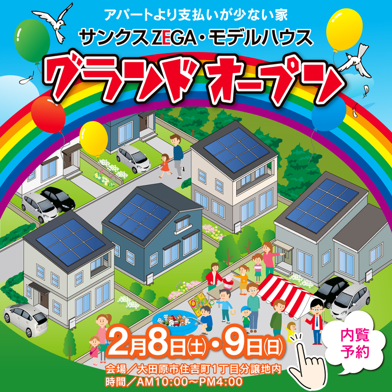 | タイトル | 「予約なし」サンクスZEGAモデルハウスオープン こども縁日 2/8,9開催予定!大田原市住吉町 |