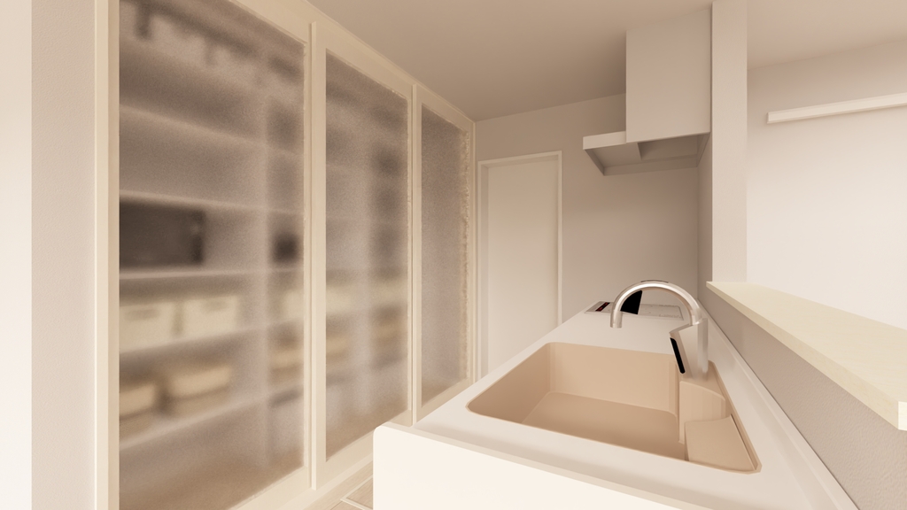 キッチンには、タッチレス水栓や充実した収納により毎日の家事をスムーズにサポートします。背面にはパントリーも備え、生活感を抑えながらすっきりとした空間を保てます。