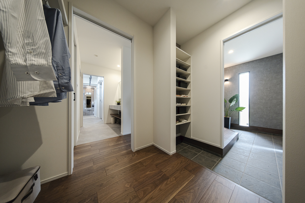 玄関からシューズクロークを通って