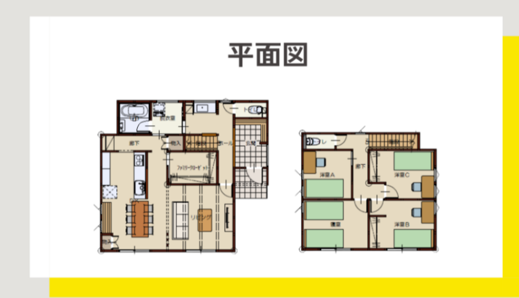 ◎ファミクロを中心に玄関ホールからはじまる回遊動線が、家族で過ごすリビングと、ひとりでゆっくり過ごす水回りをつなげる快適な間取り。