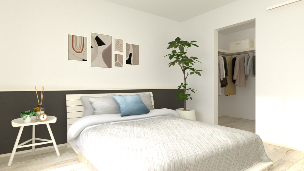 住空間の中心には、LDKとウッドデッキが一体となった、面積以上の広がりを感じる開放的な空間をレイアウト。室内と屋外がゆるやかにつながり、朝の一杯を楽しむ時間や、夕方の心地よい風を感じるひととき、気軽なおうちアウトドアまで、暮らしの幅を広げてくれます。