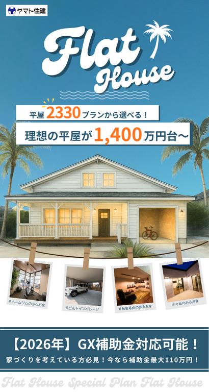 | タイトル | 【平屋2330プランから選べる!】理想の平屋が1,400万円台から! |