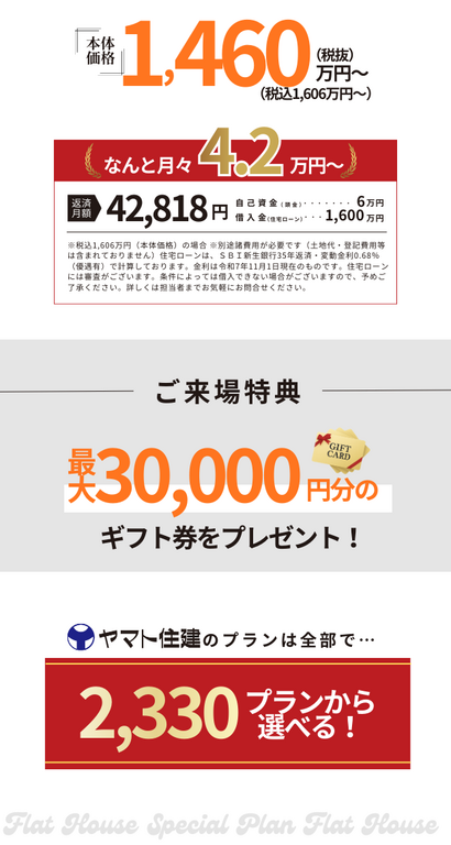 ・初めてヤマト住建にご来場であること(過去に、店舗・モデルハウス・イベントのいずれかにご来場いただいたことがある場合は対象外となります)