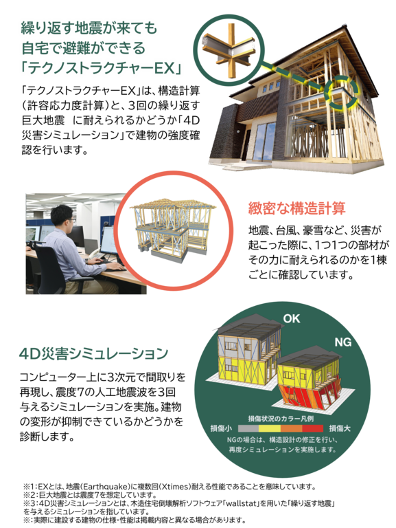 この平穏な日常を支えるのは、パナソニックが同時開発したオリジナル部材を使用した「テクノストラクチャー工法」で全棟で実施する「388項目の構造計算」。巨大地震の後も、自立して家族を守り続ける圧倒的な「強さ」と「レジリエンス(回復力)」があるからこそ、心に本当のゆとりが生まれるのです。