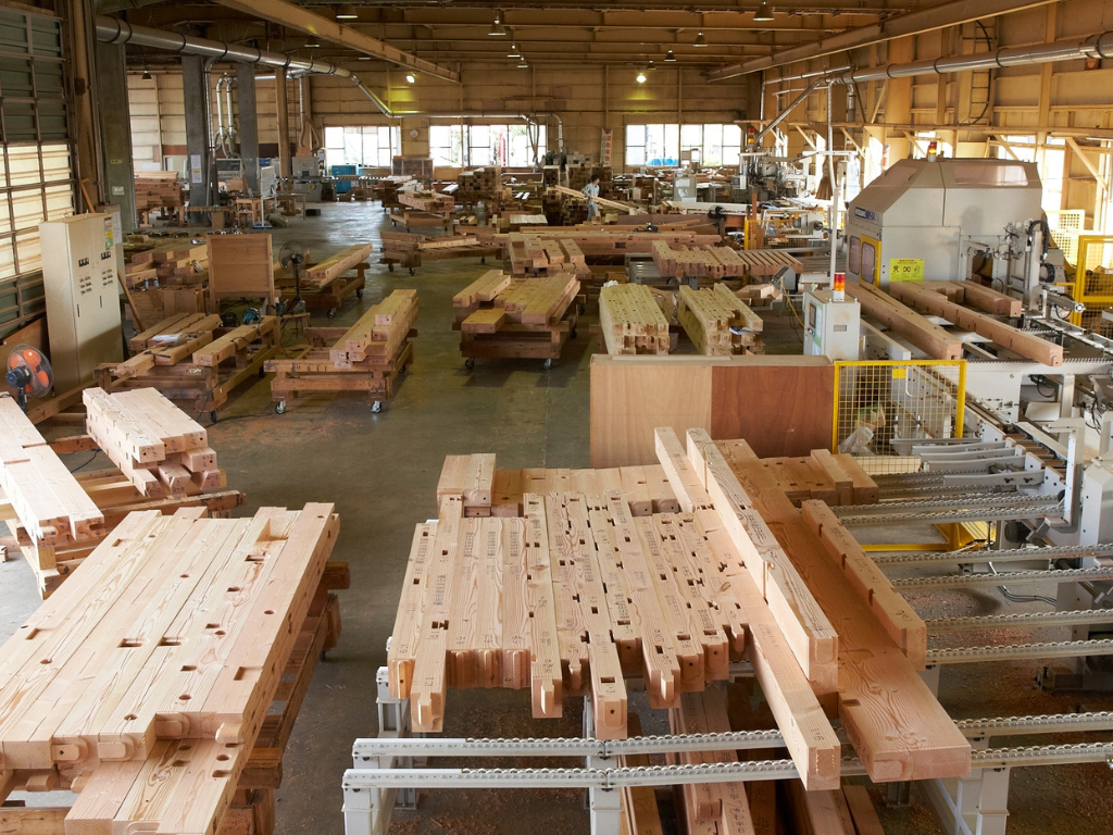 森で育った木々が、職人の手を経て住宅用木材になるまでの工程を間近でご覧いただけます。