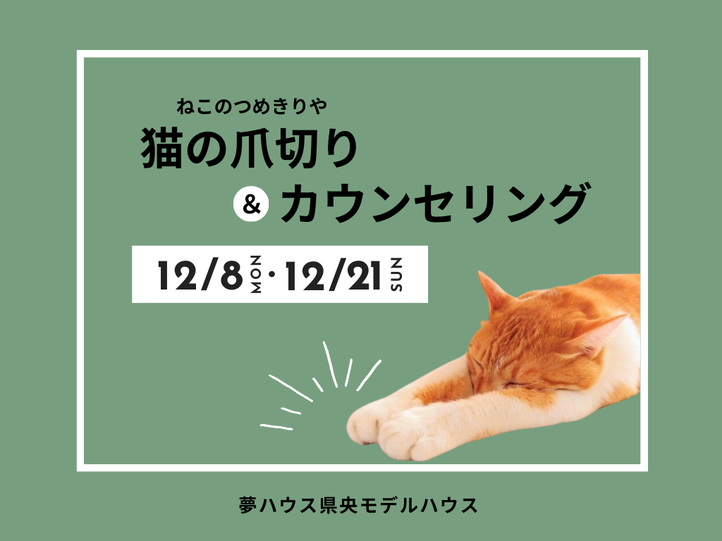新潟県動物愛護センターでも活動されているプロの「ねこのつめきりやさん」による特別イベントが、県央モデルハウスで開催されます。無垢材を使用したやすらぎの空間で、猫ちゃんと一緒に快適なひとときを過ごしてみませんか?