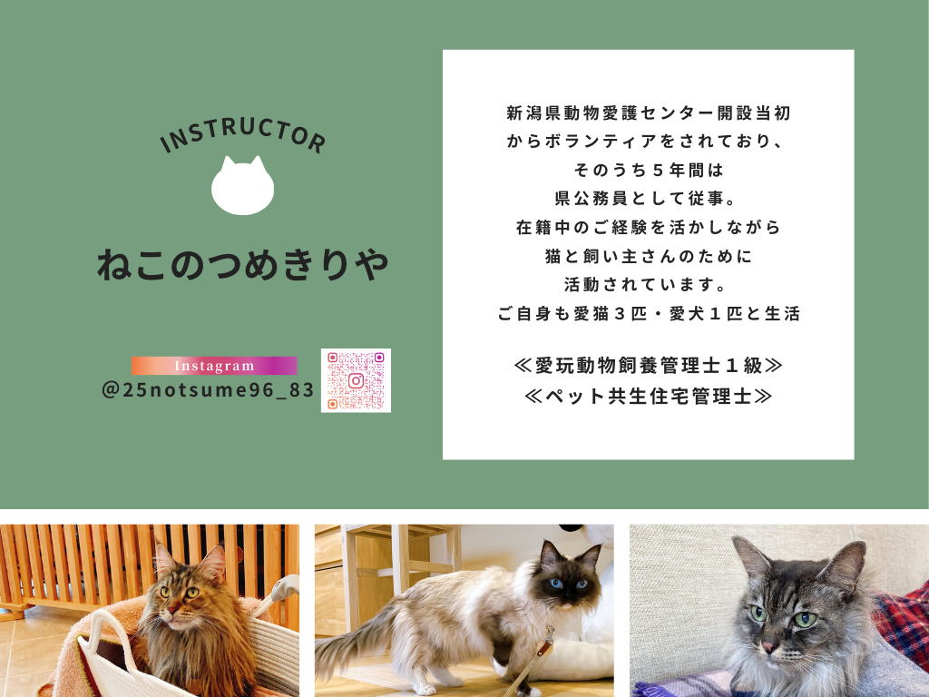 新潟県動物愛護センターでの長年の経験を活かし、猫ちゃんと飼い主さんの暮らしをサポート。