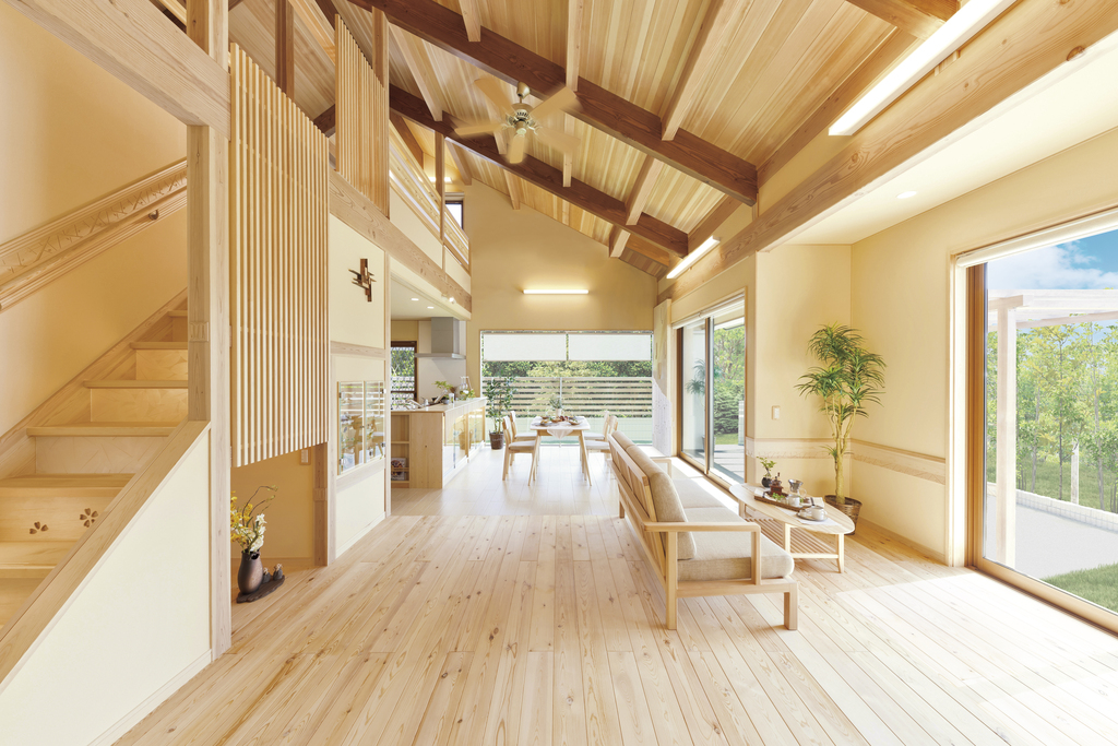 天然木の床は、冬でも素足で過ごせるほどの心地よさ。木のやさしさを肌で感じてください。