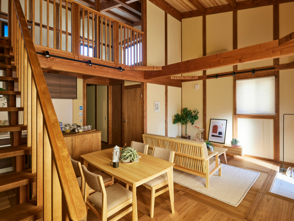自然素材の風合いとメーターモジュール設計が、開放感あふれる空間を生み出し、心地よい住まいを叶えます。